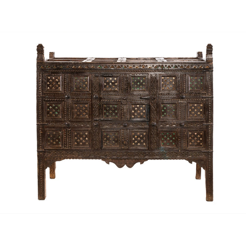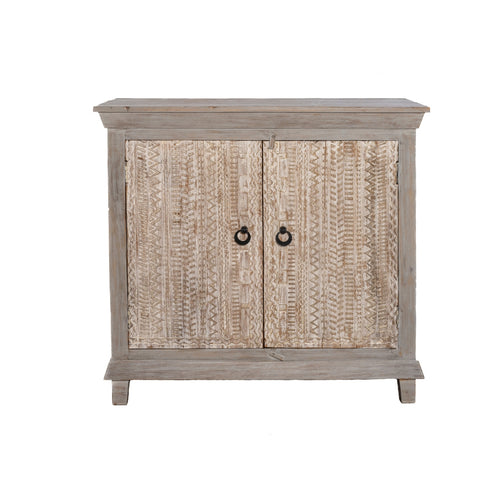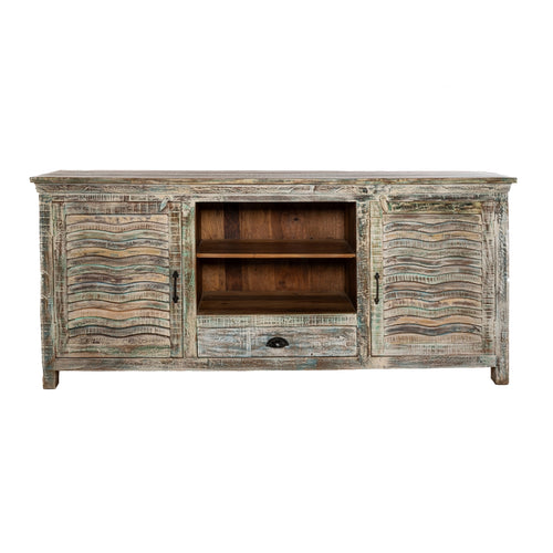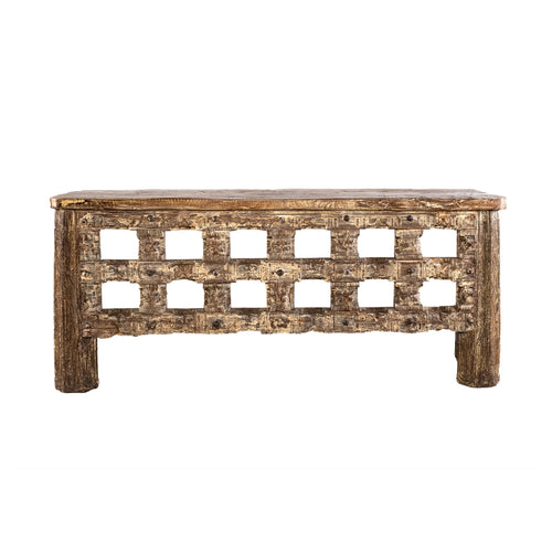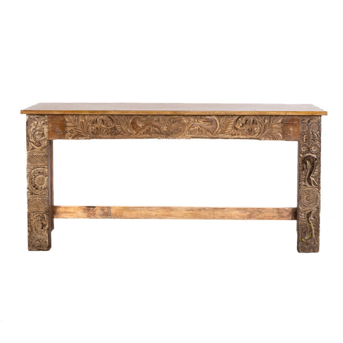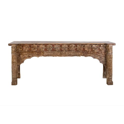 CONSOLA TALLADA Y PINTADA DE MADERA RECICLADA