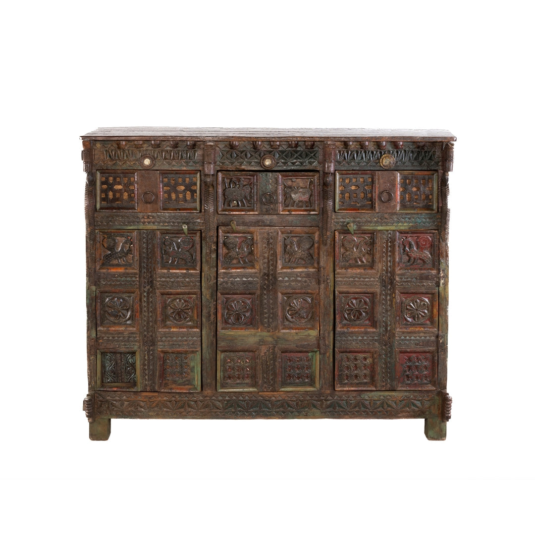 COMODA TALLADA CON DETALLES VERDES En oferta