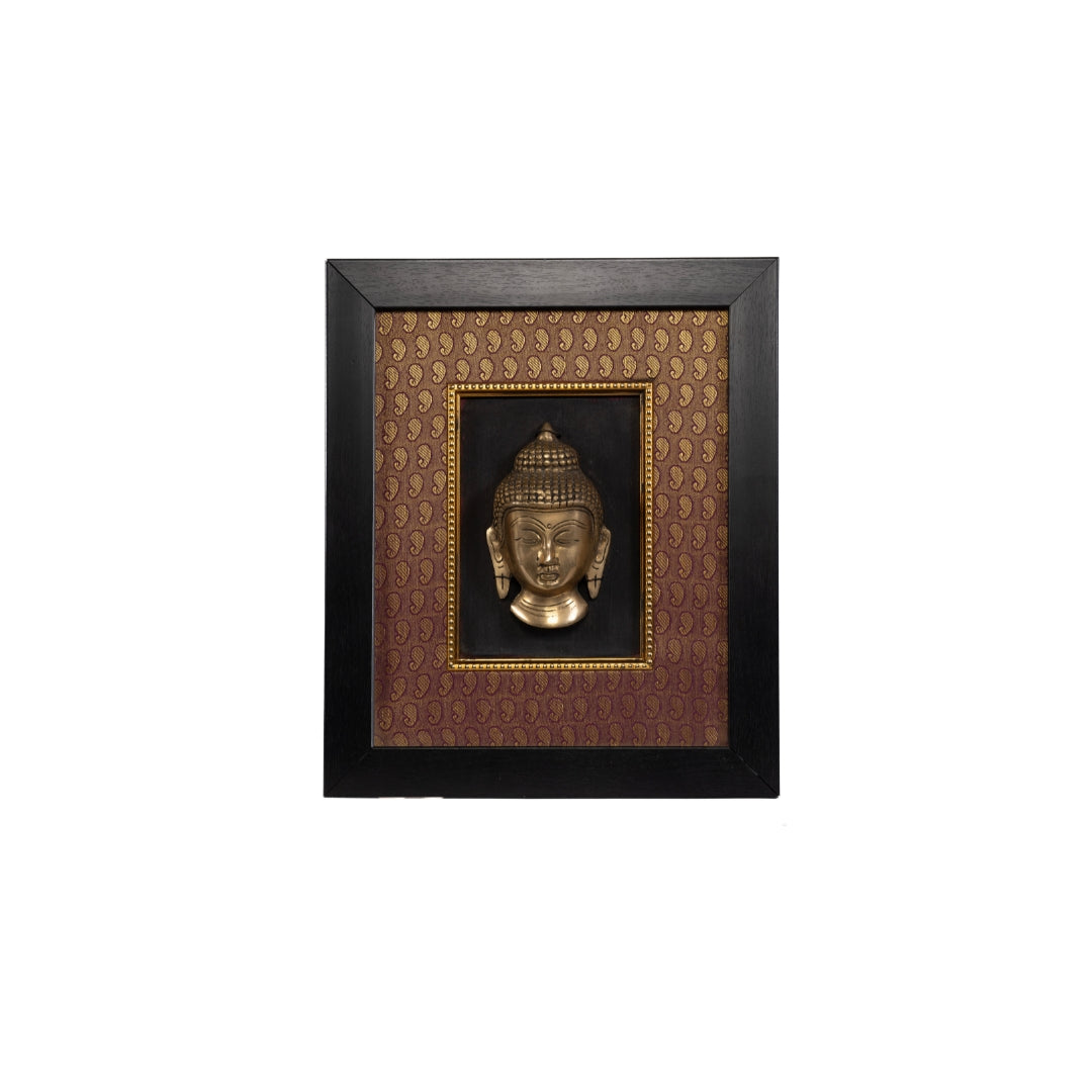 Cuadro pequeño con figura de buda hecha de bronce de India.