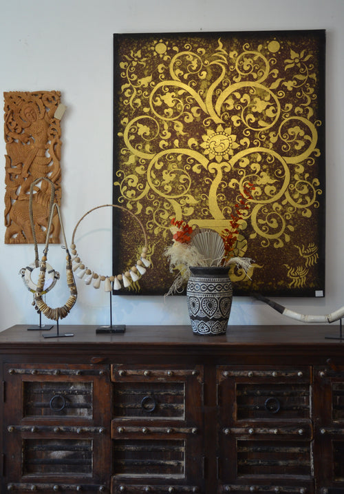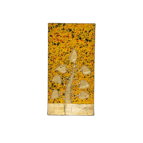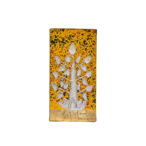 CUADRO ARBOL PLATA FONDO AMARILLO