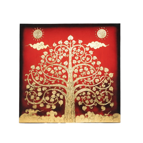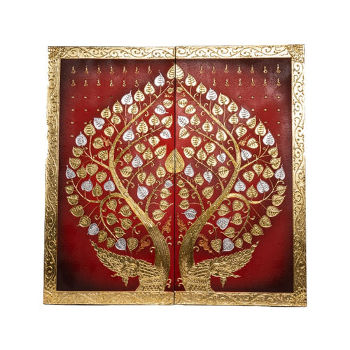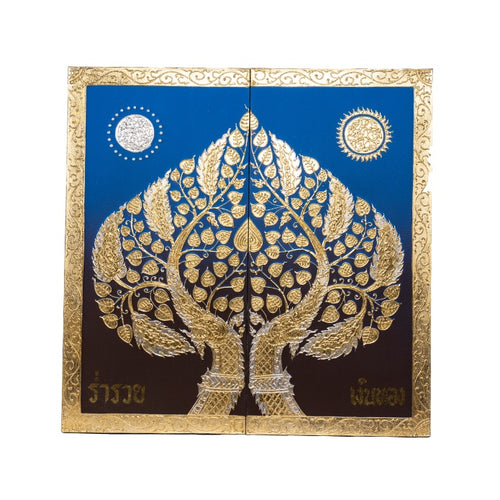 CUADRO DOBLE HOJAS DORADAS Y PLATA