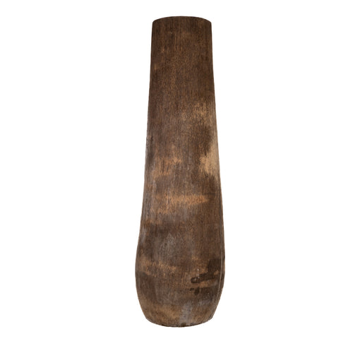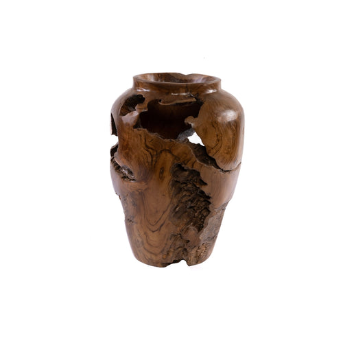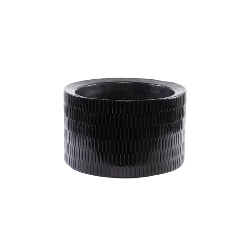 Florero ovalado hecho a mano de aluminio repujado en color plateado y tamaño grande.