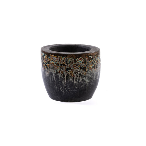 MACETA REDONDA TALLADA NEGRA