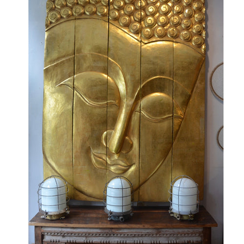 Cuadro pintura de rostro buda pintado a mano con fondo obscuro de Tailandia.