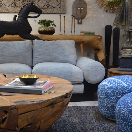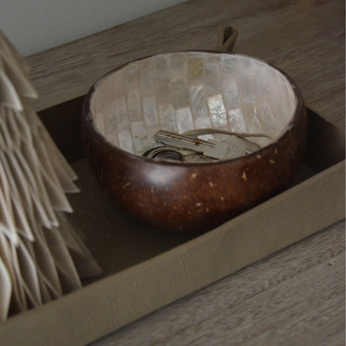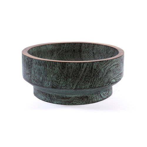 Maceta o batea pequeña tallada a mano de madera en color obscuro de Tailandia.