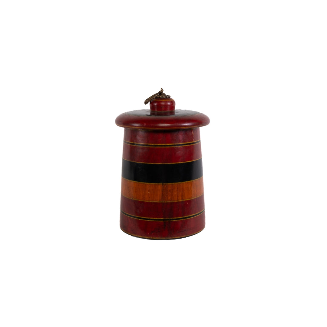 Mortero con tapa hecho de madera de mango con detalles pintados a mano de India.